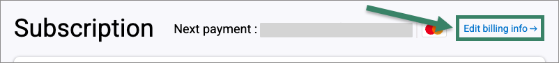 - On the Billing page, click Edit billing info in the upper‑right corner.